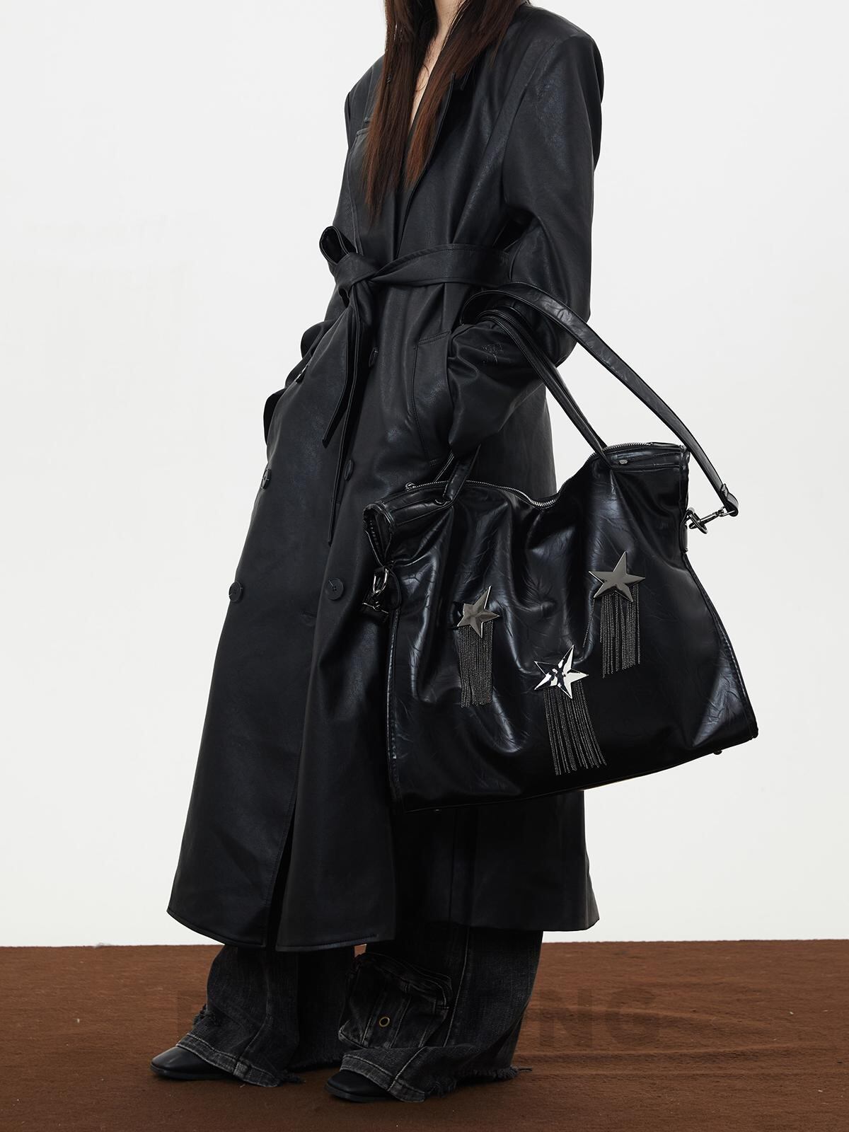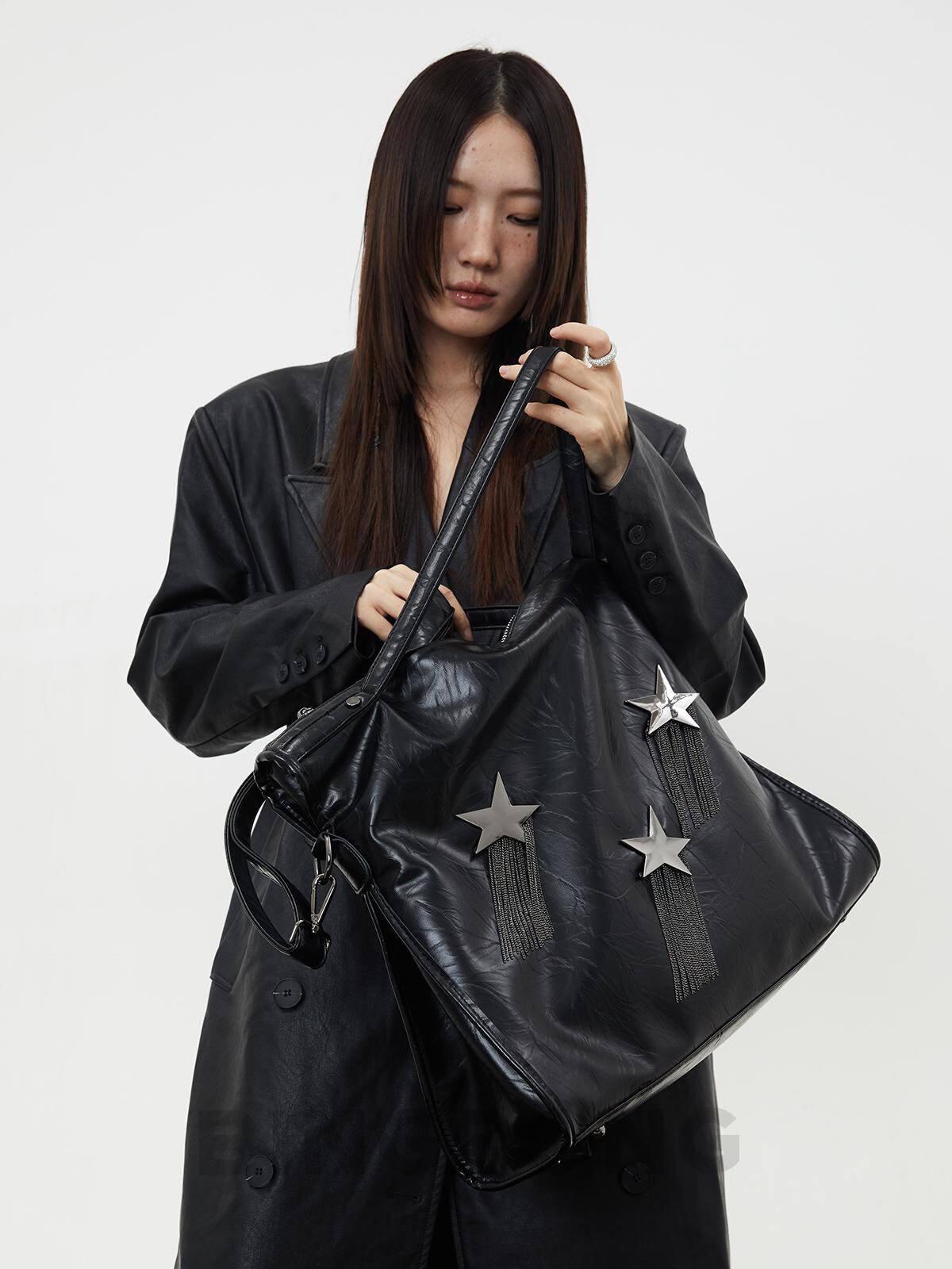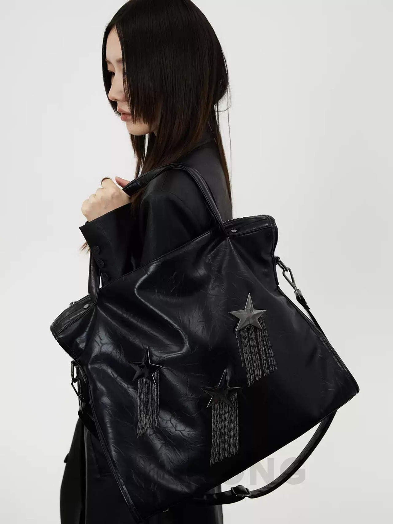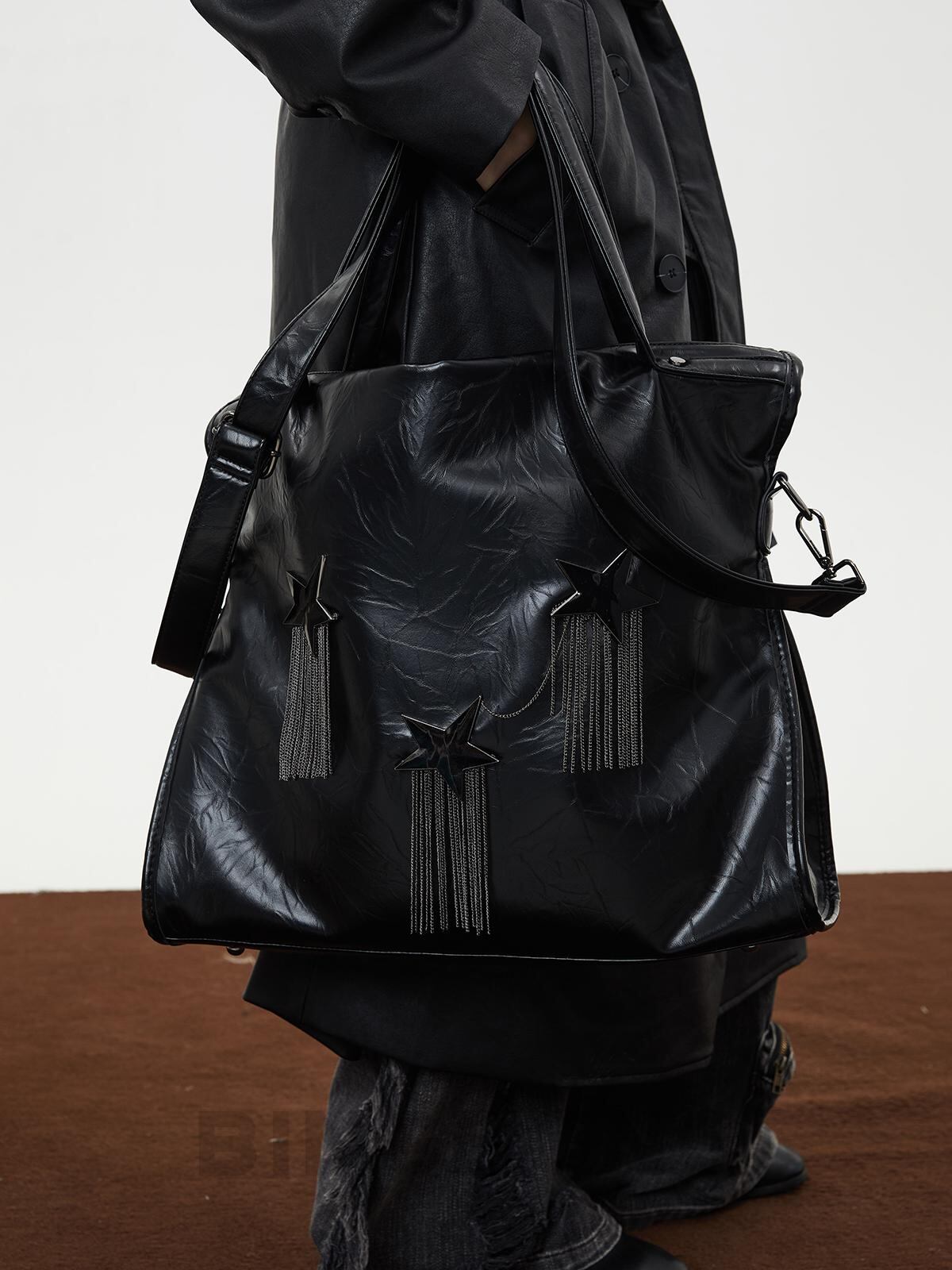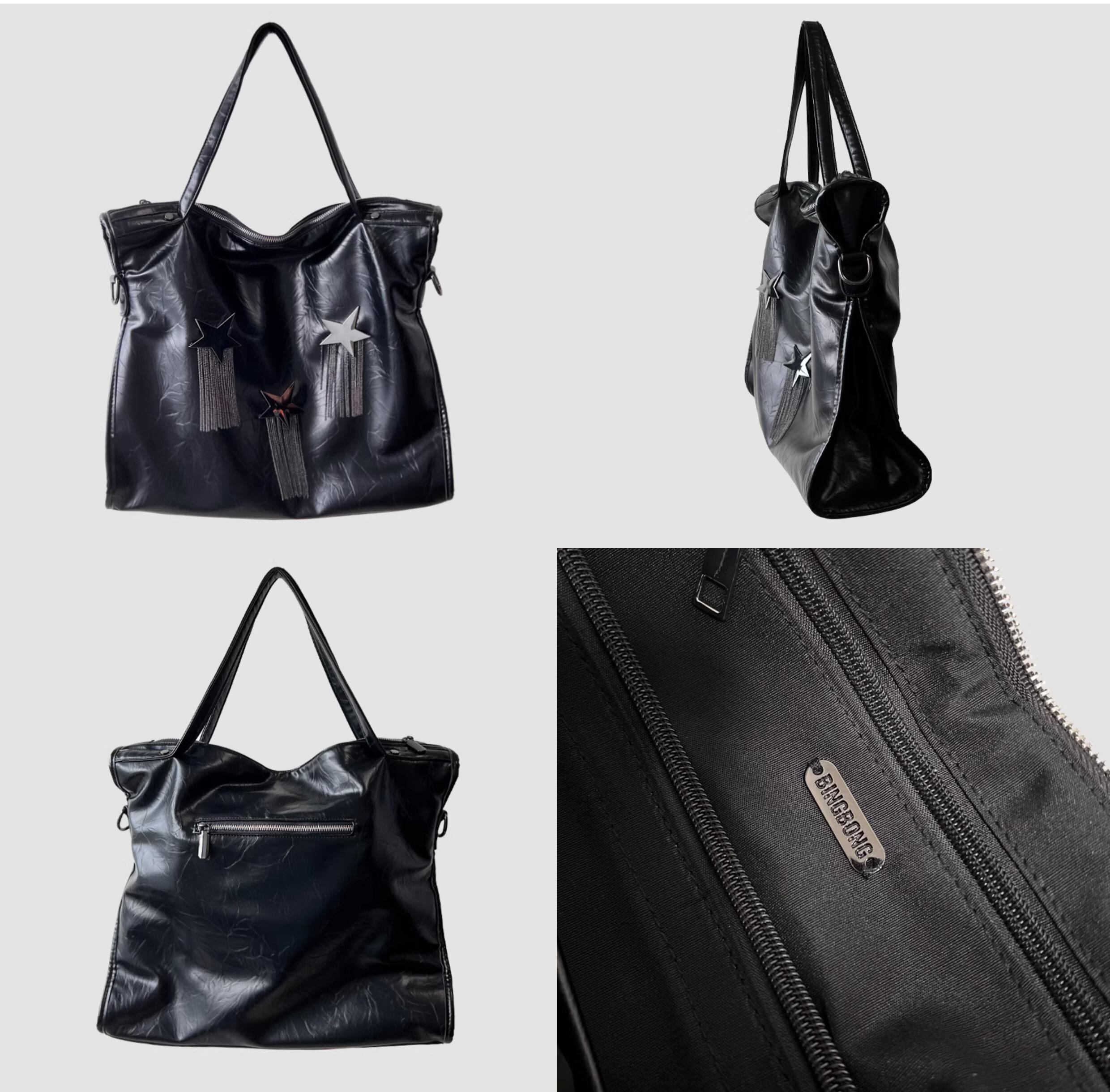 [BINGBONG] Midnight Meteor Large Capacity Black Tassel Tote | creeptrey