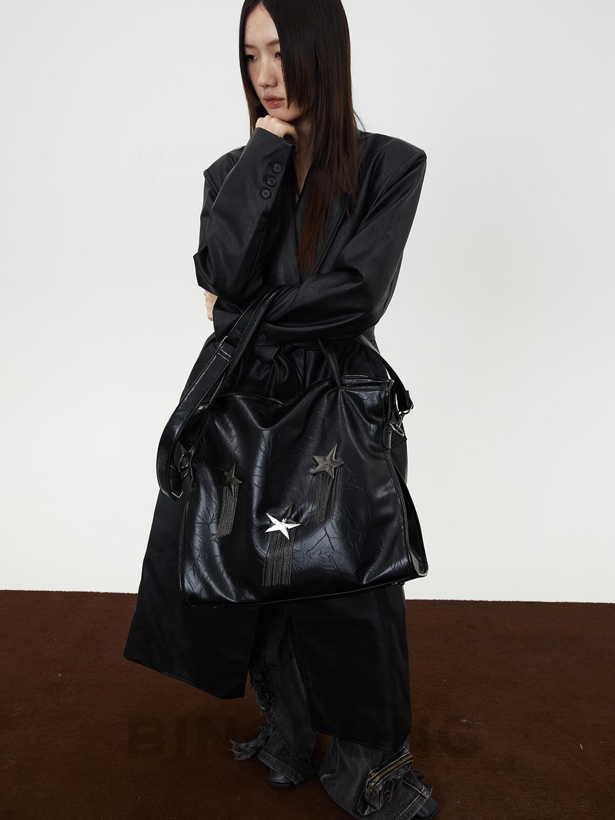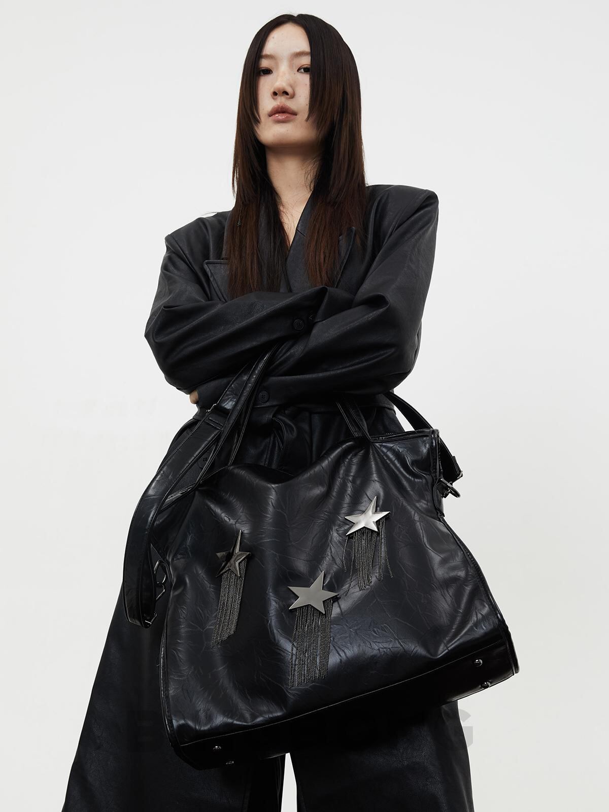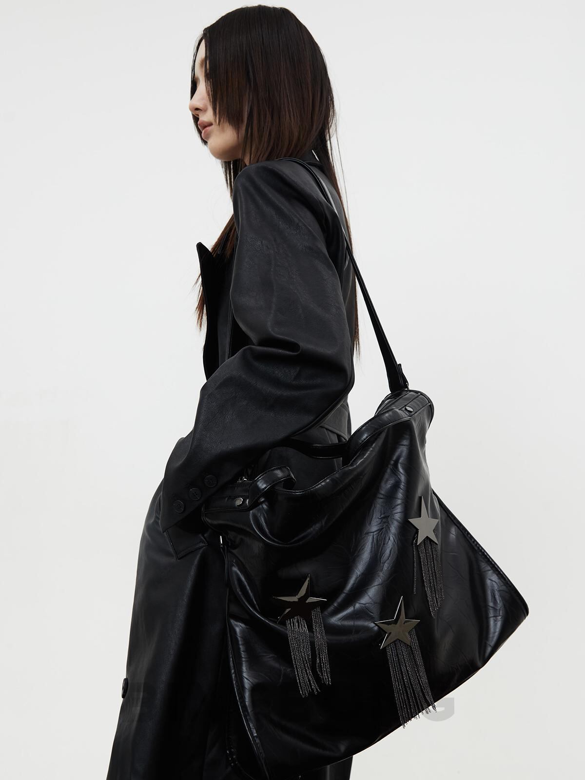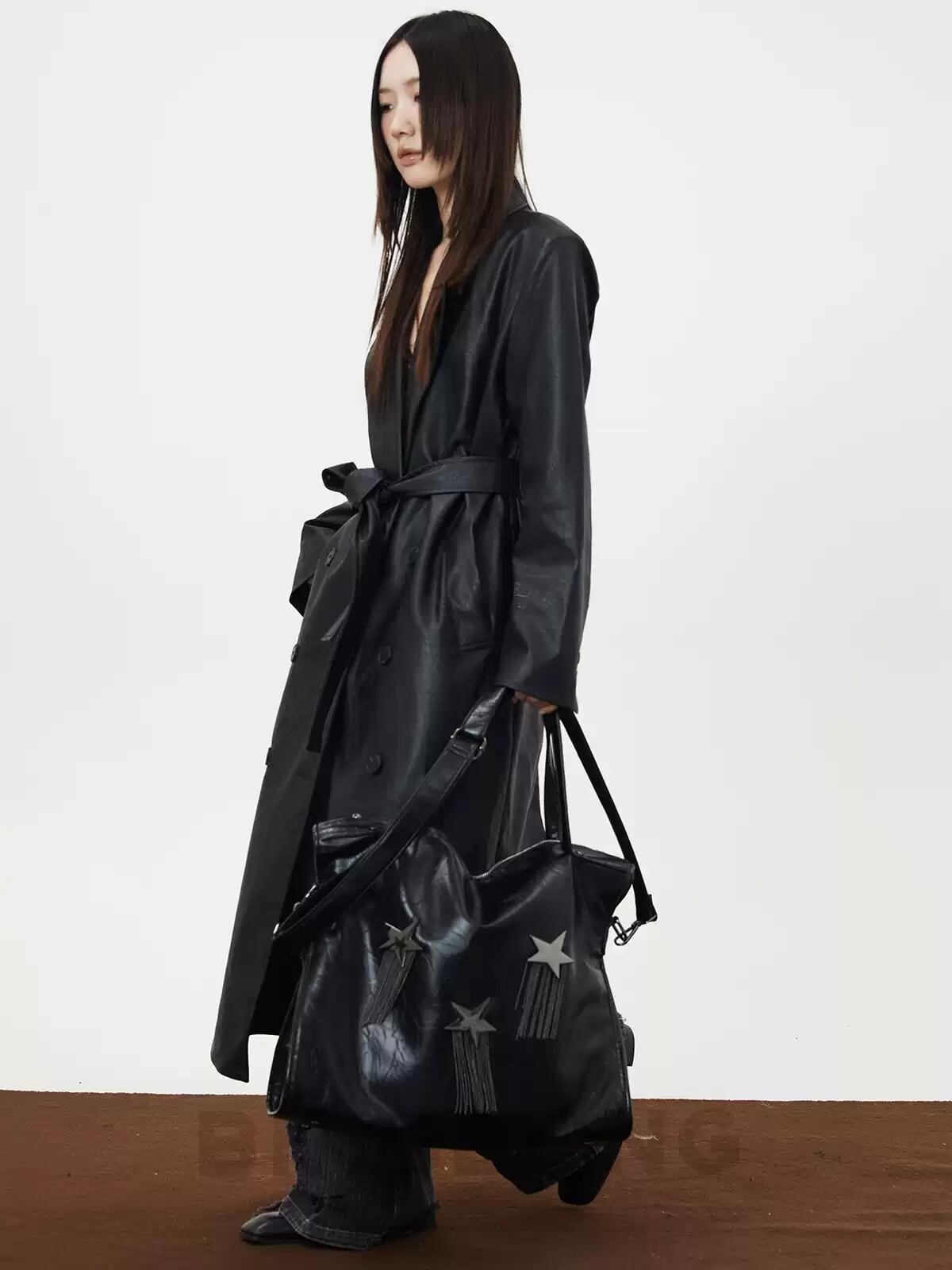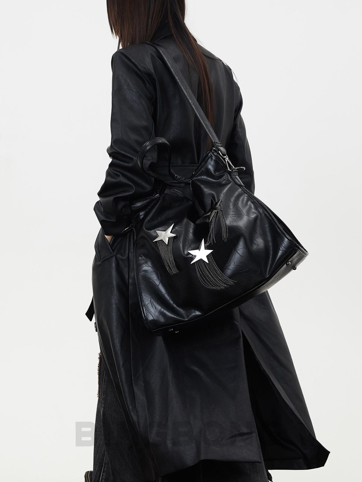 [BINGBONG] Midnight Meteor Large Capacity Black Tassel Tote | creeptrey