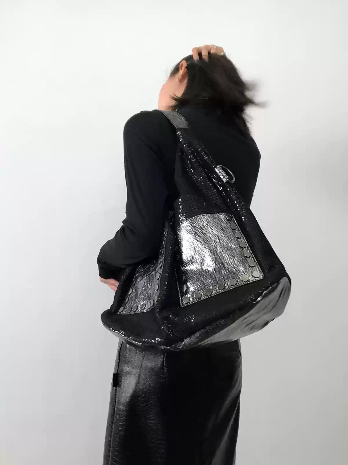[BINGBONG] Dark Shoulder Tote Bag with Sequin Accent | creeptrey