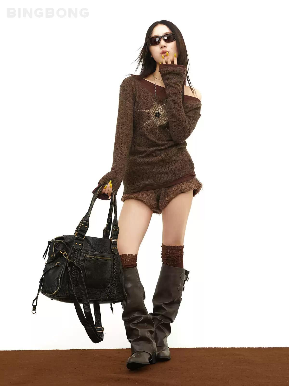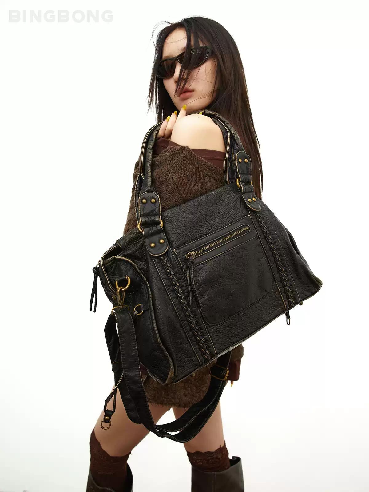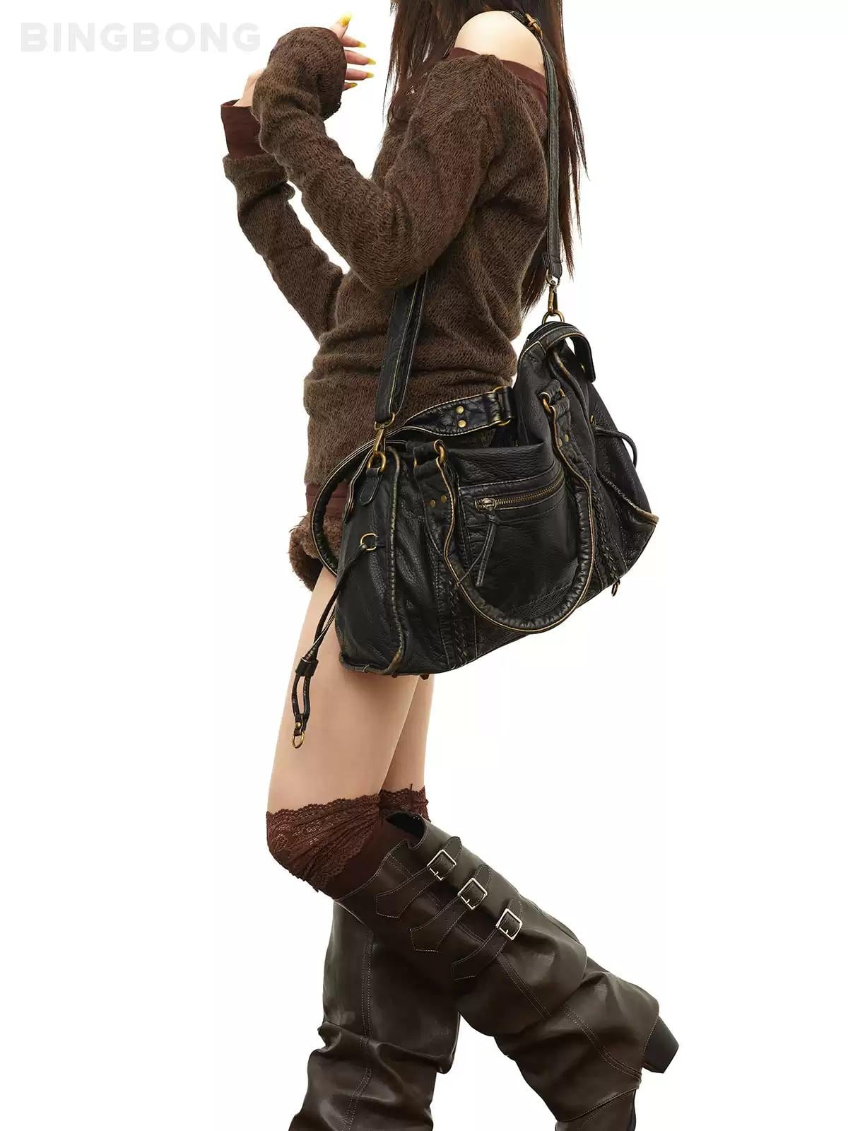 [BINGBONG] French Vintage Motorcycle Shoulder Tote Bag | creeptrey