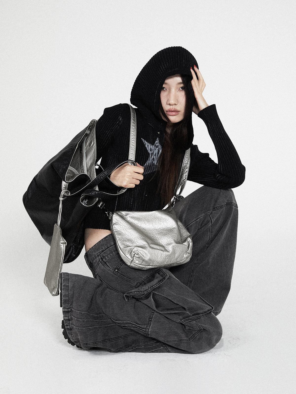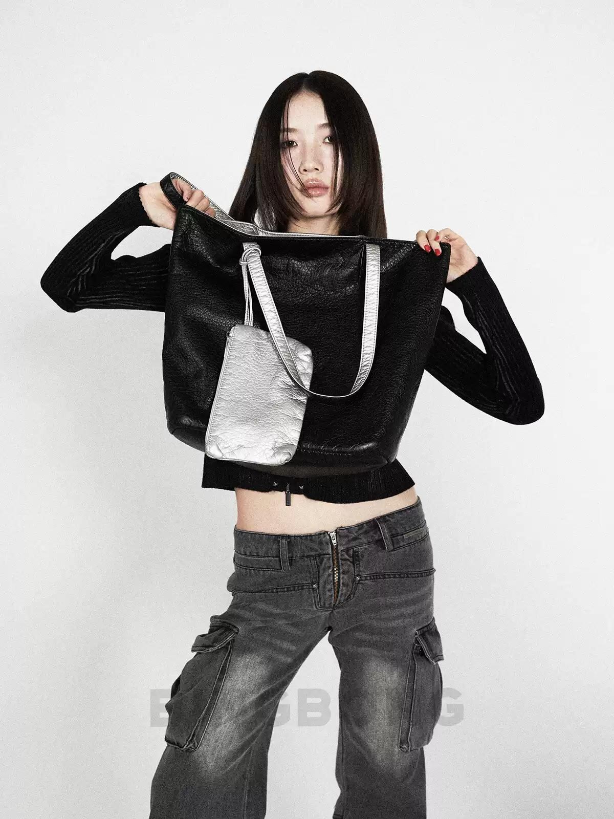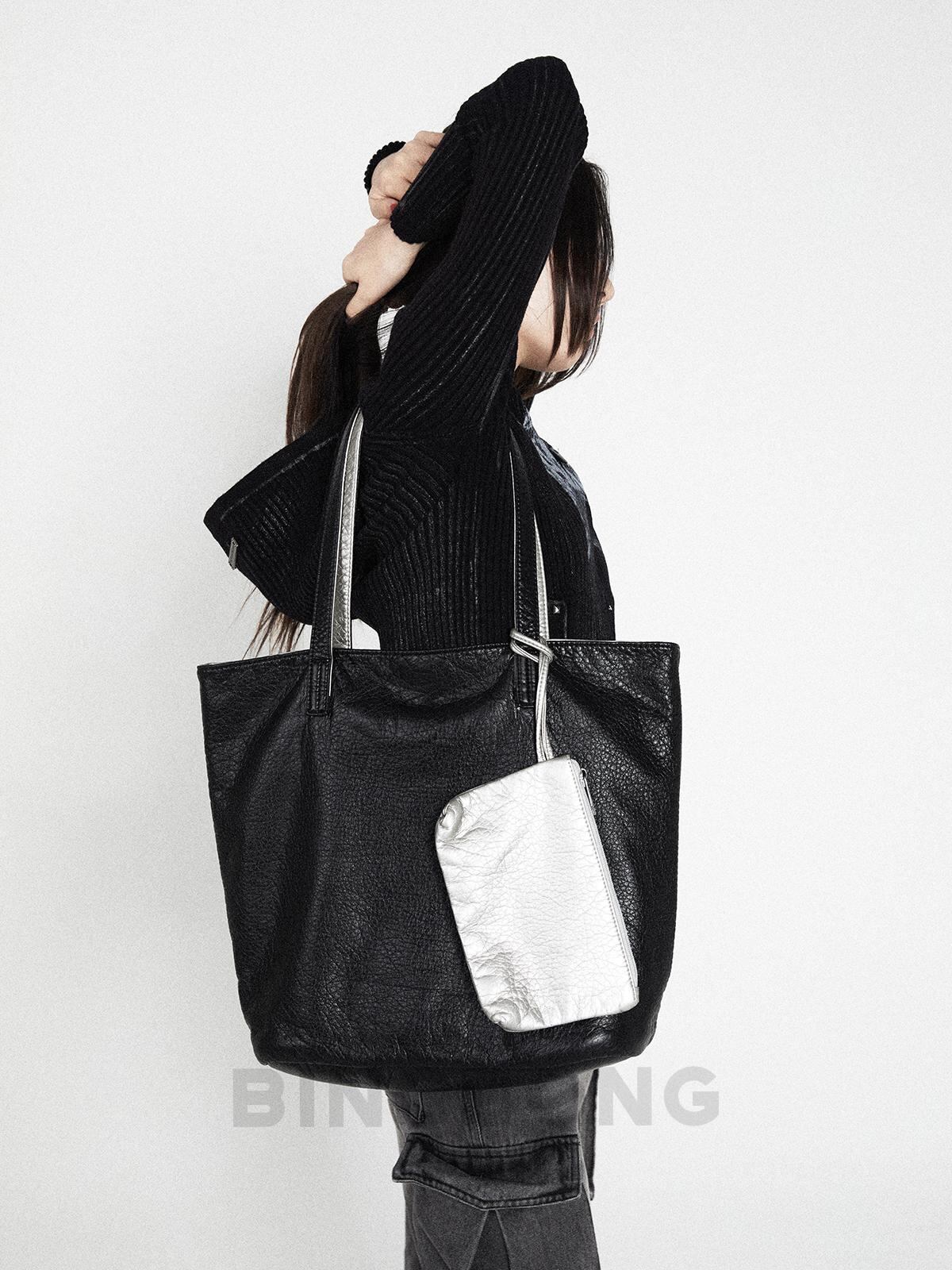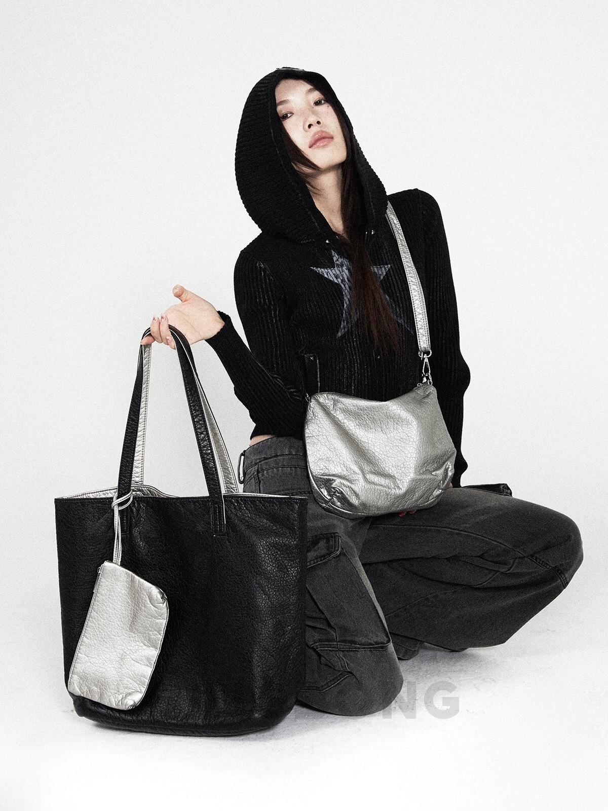 [BINGBONG] Black and Silver Convertible Shopping Bag | creeptrey