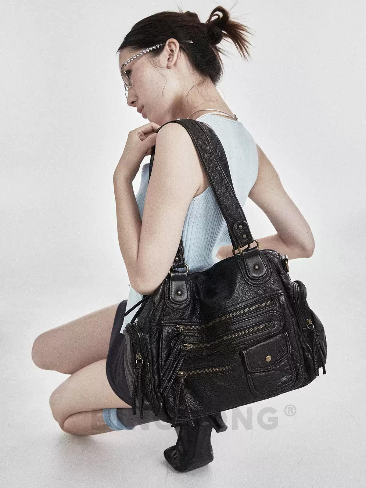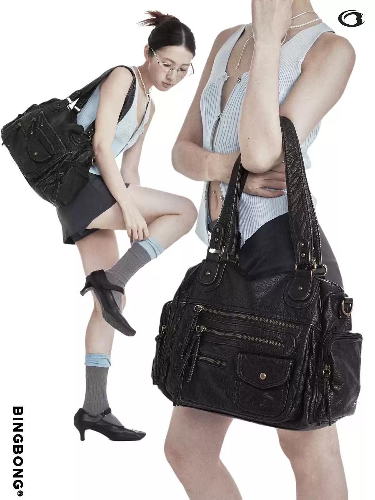 [BINGBONG] Benjamin Black and Brown Soft Commuter Tote Bag | creeptrey