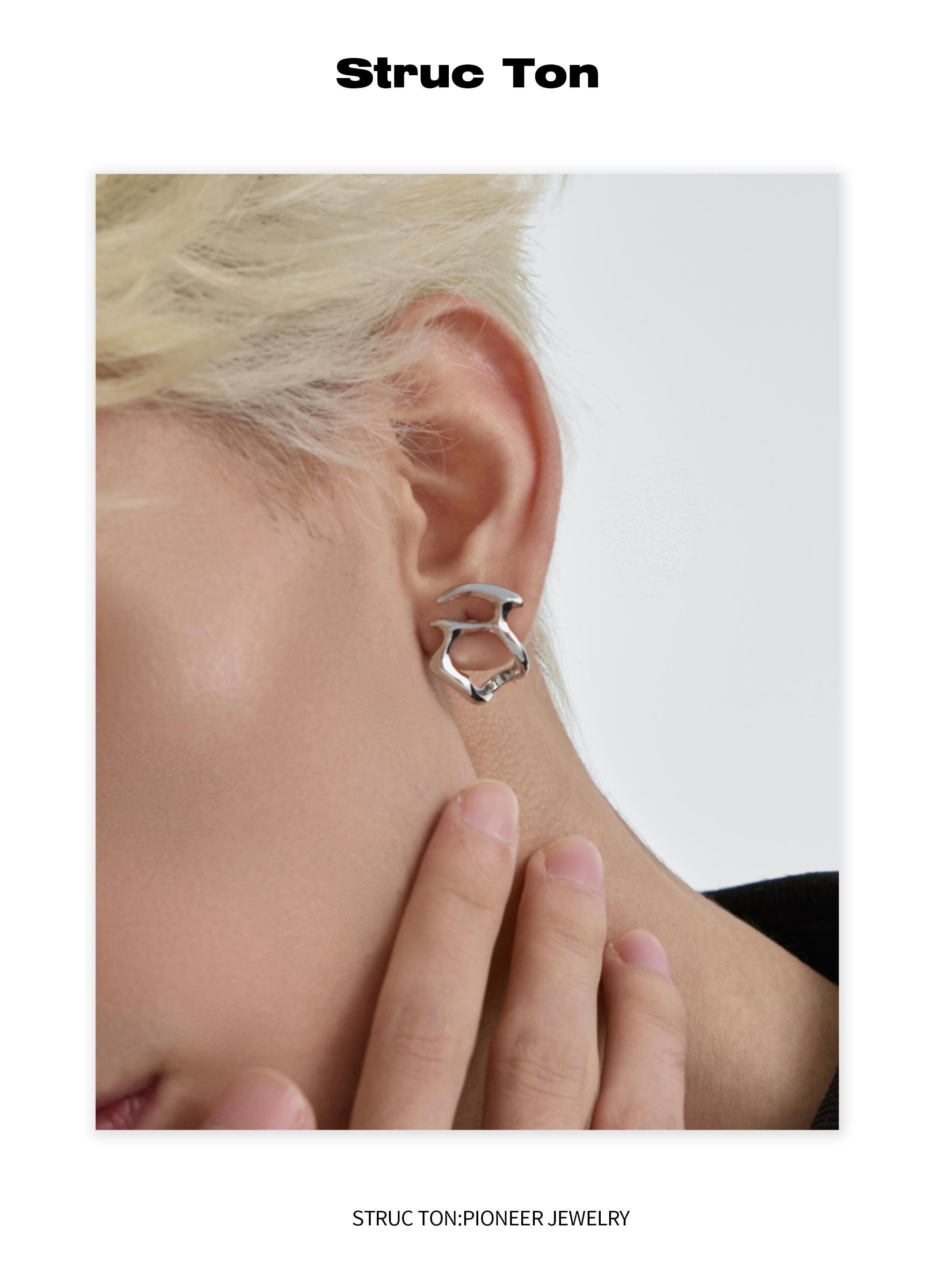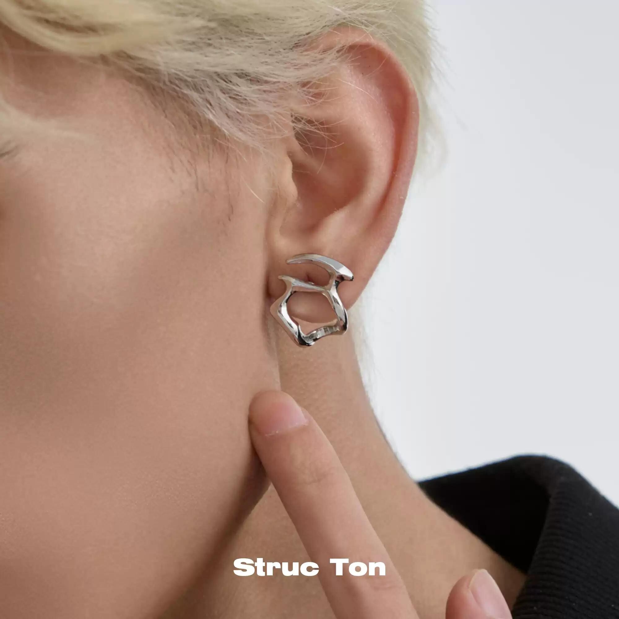 [StrucTon] Liquid Irregular Metal Hollow Earrings | creeptrey