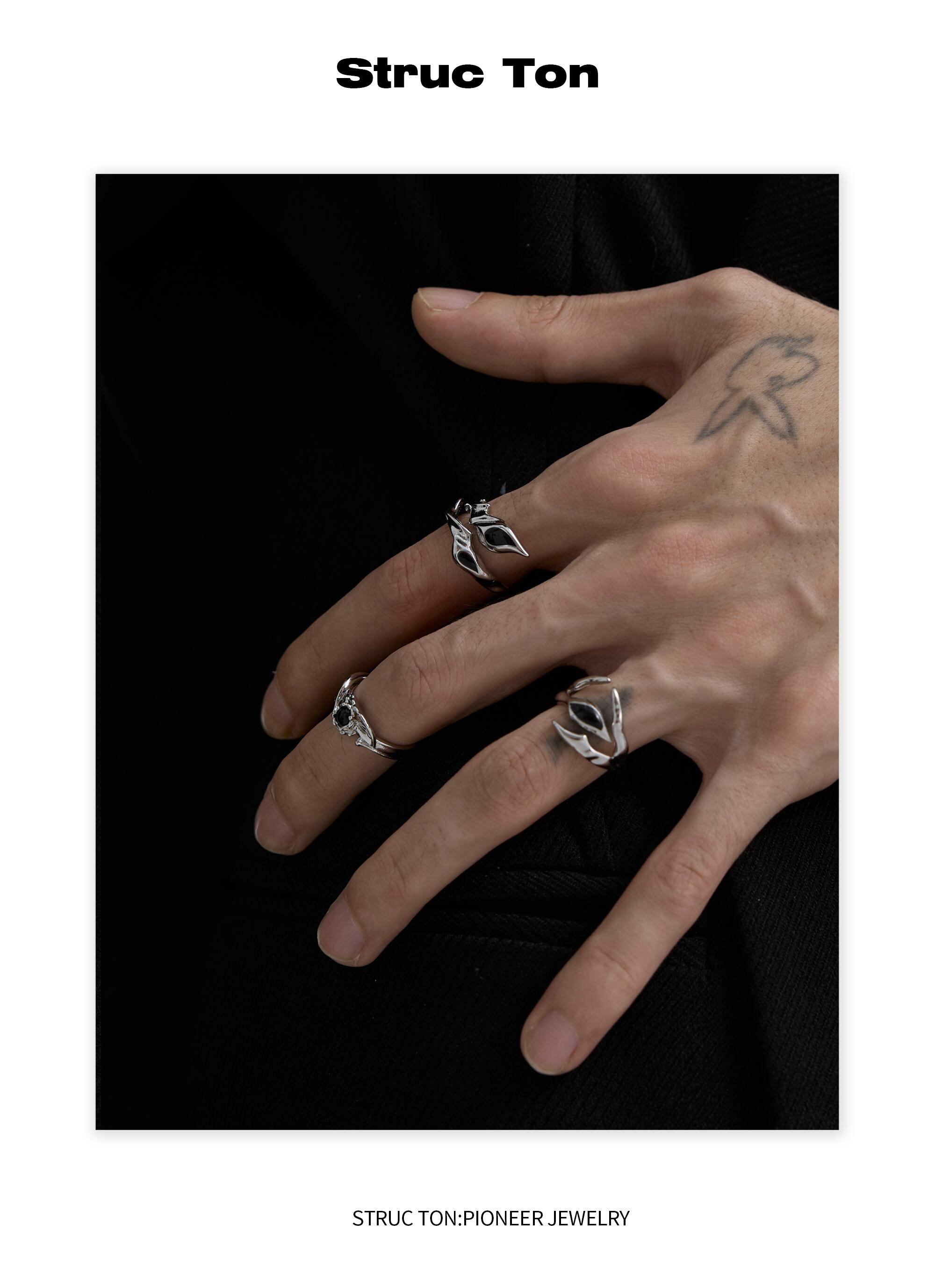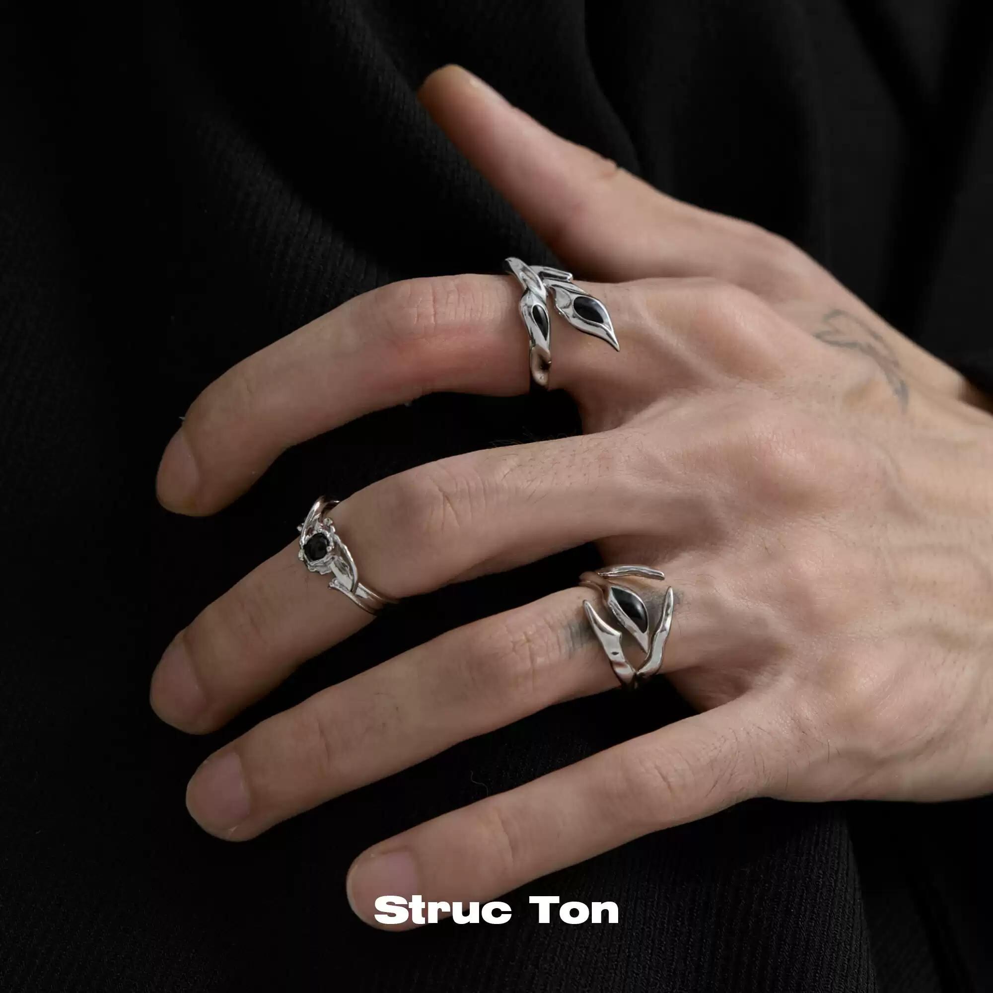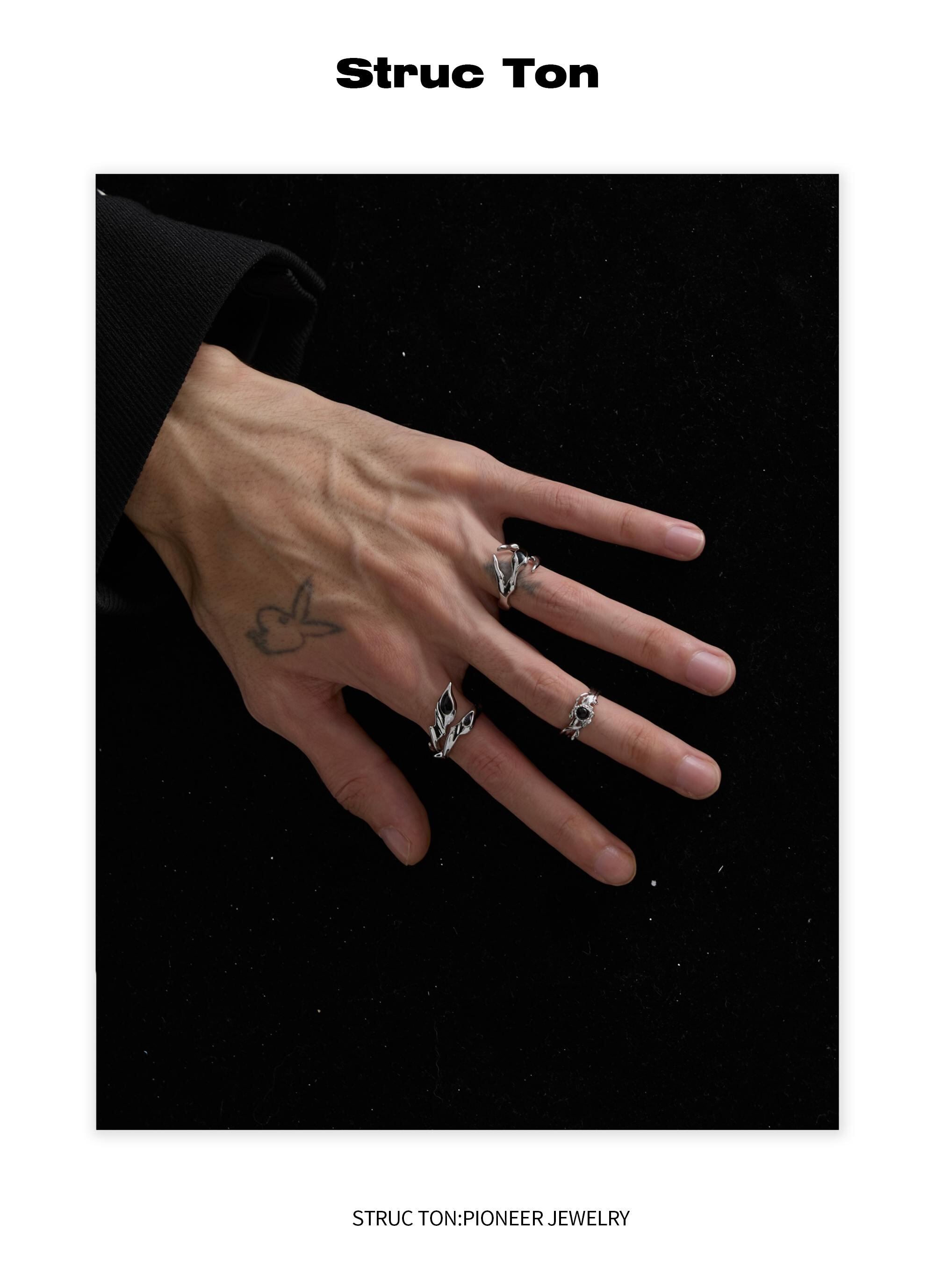 [StrucTon] Mirror Wing Thorns Leaf Punk Ring | creeptrey