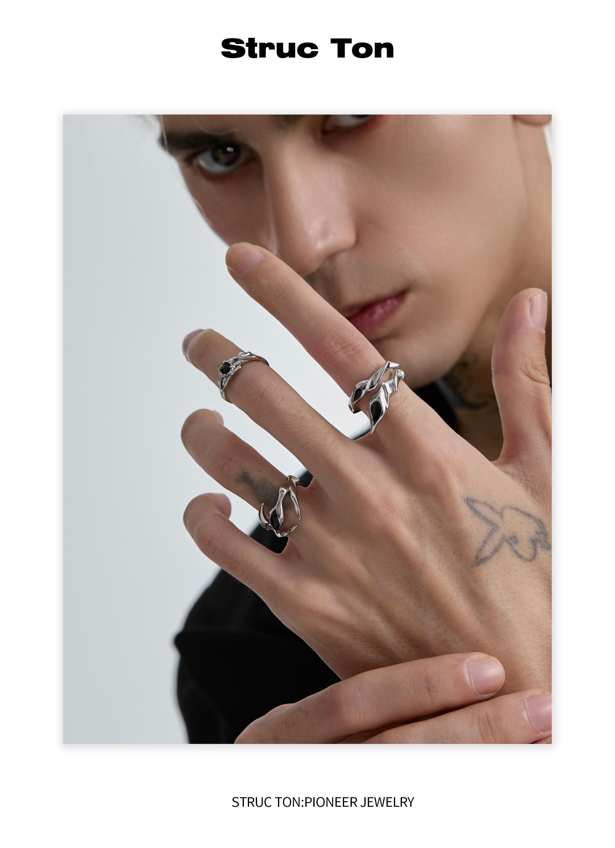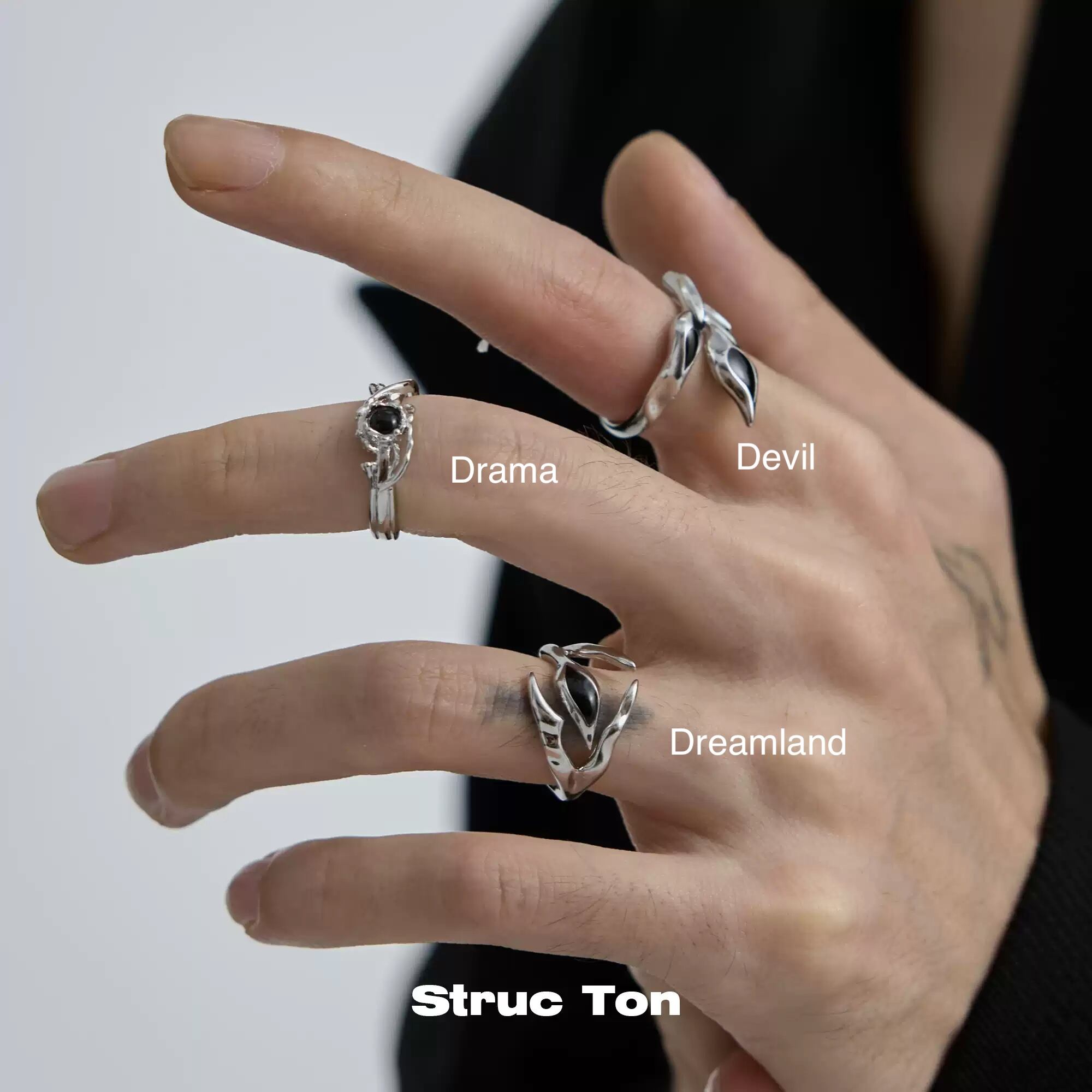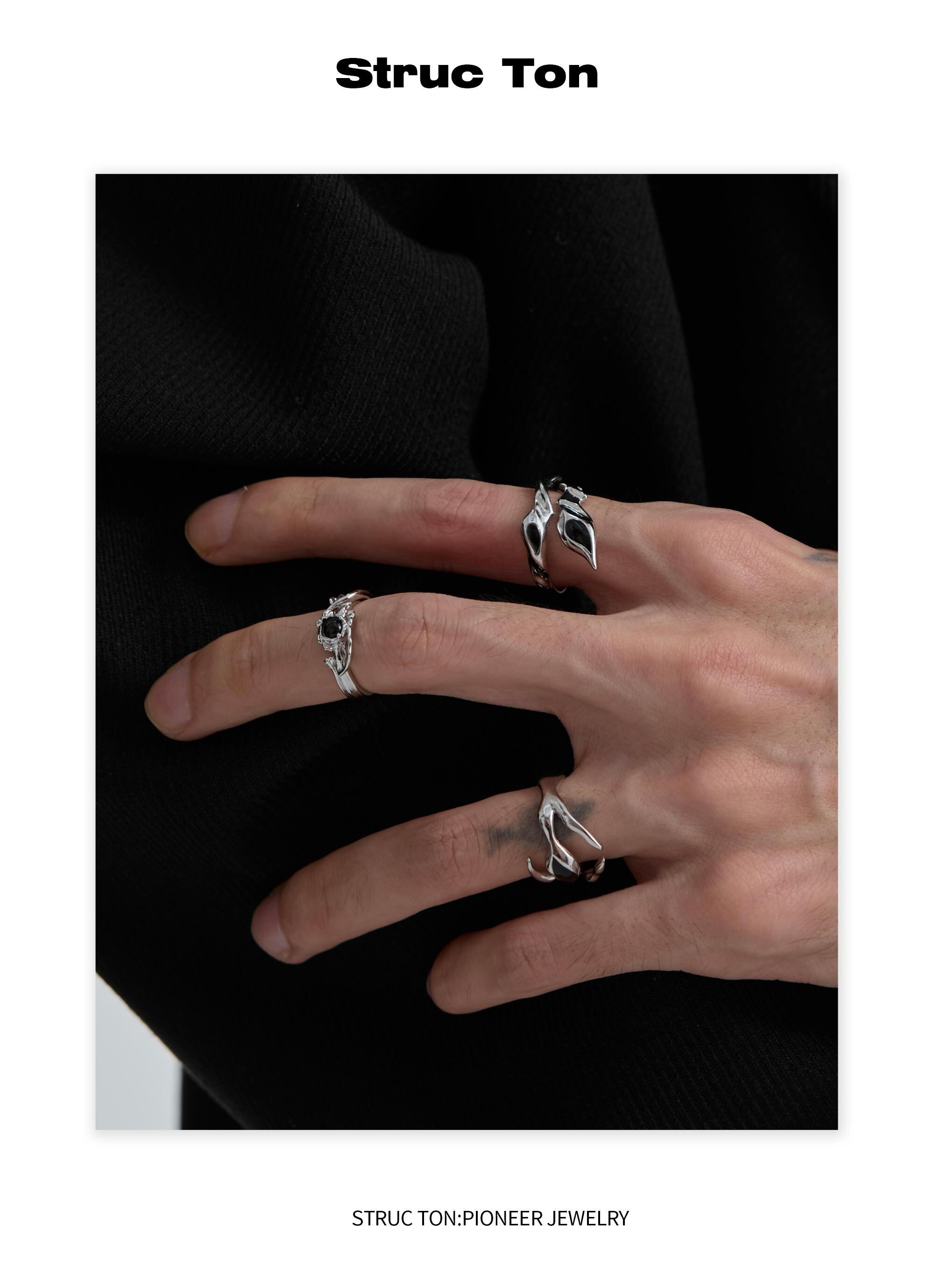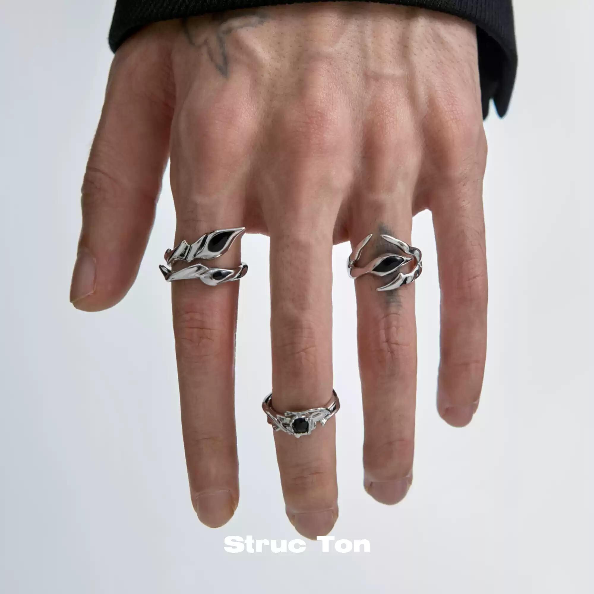 [StrucTon] Mirror Wing Thorns Leaf Punk Ring | creeptrey