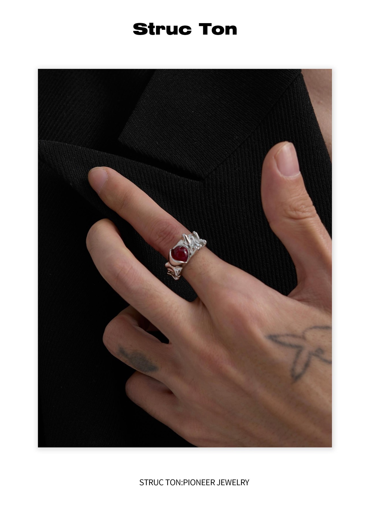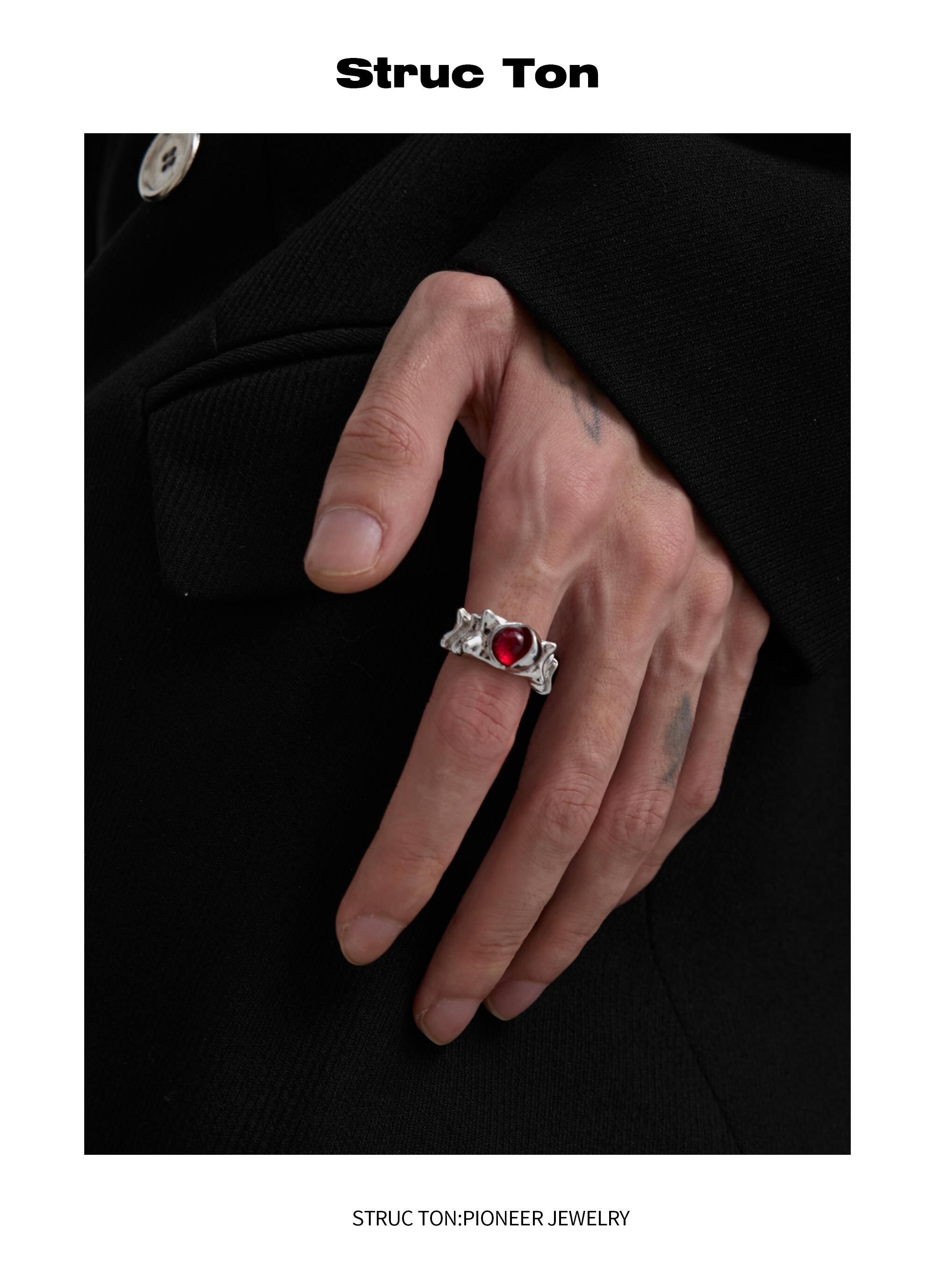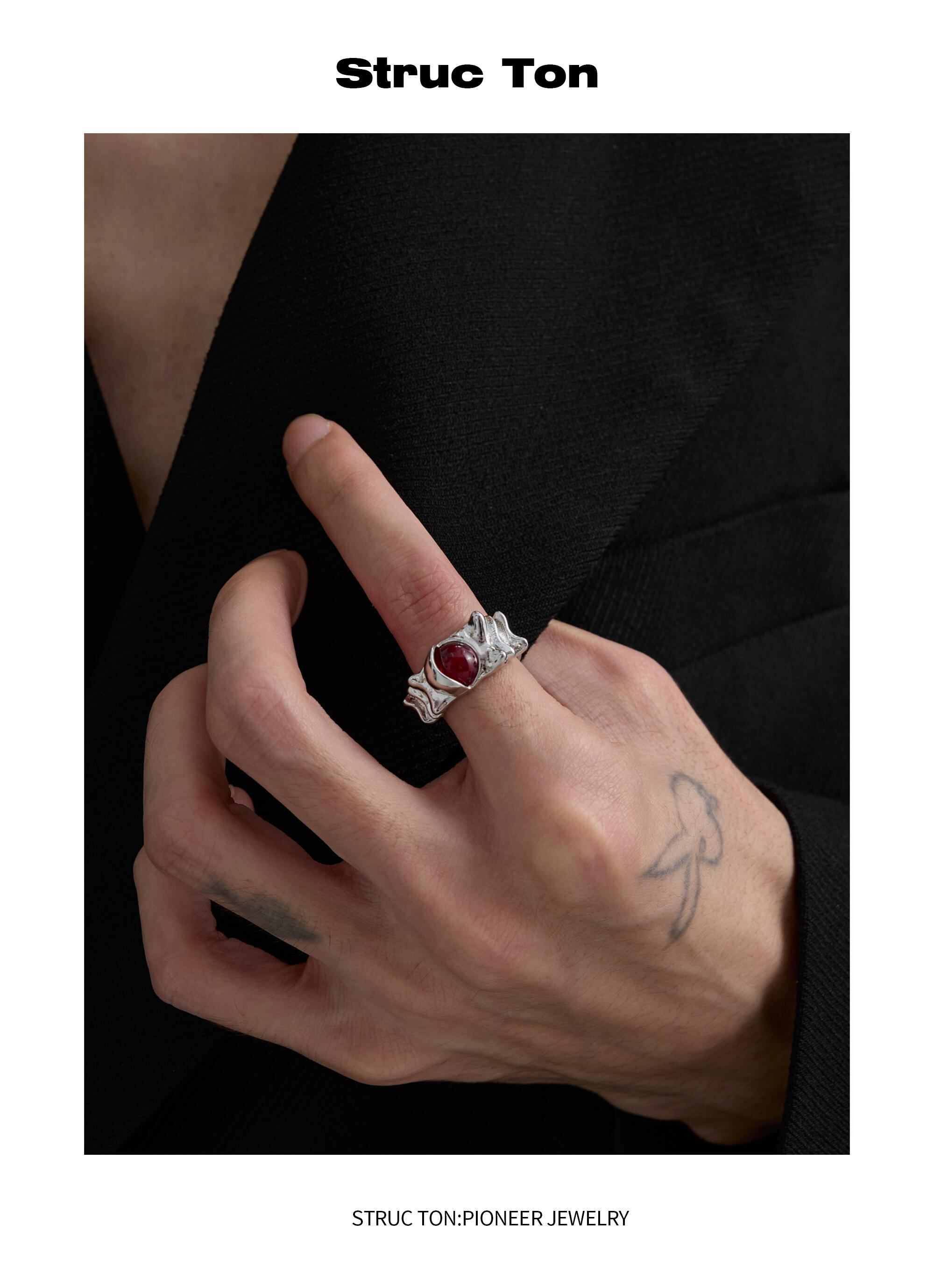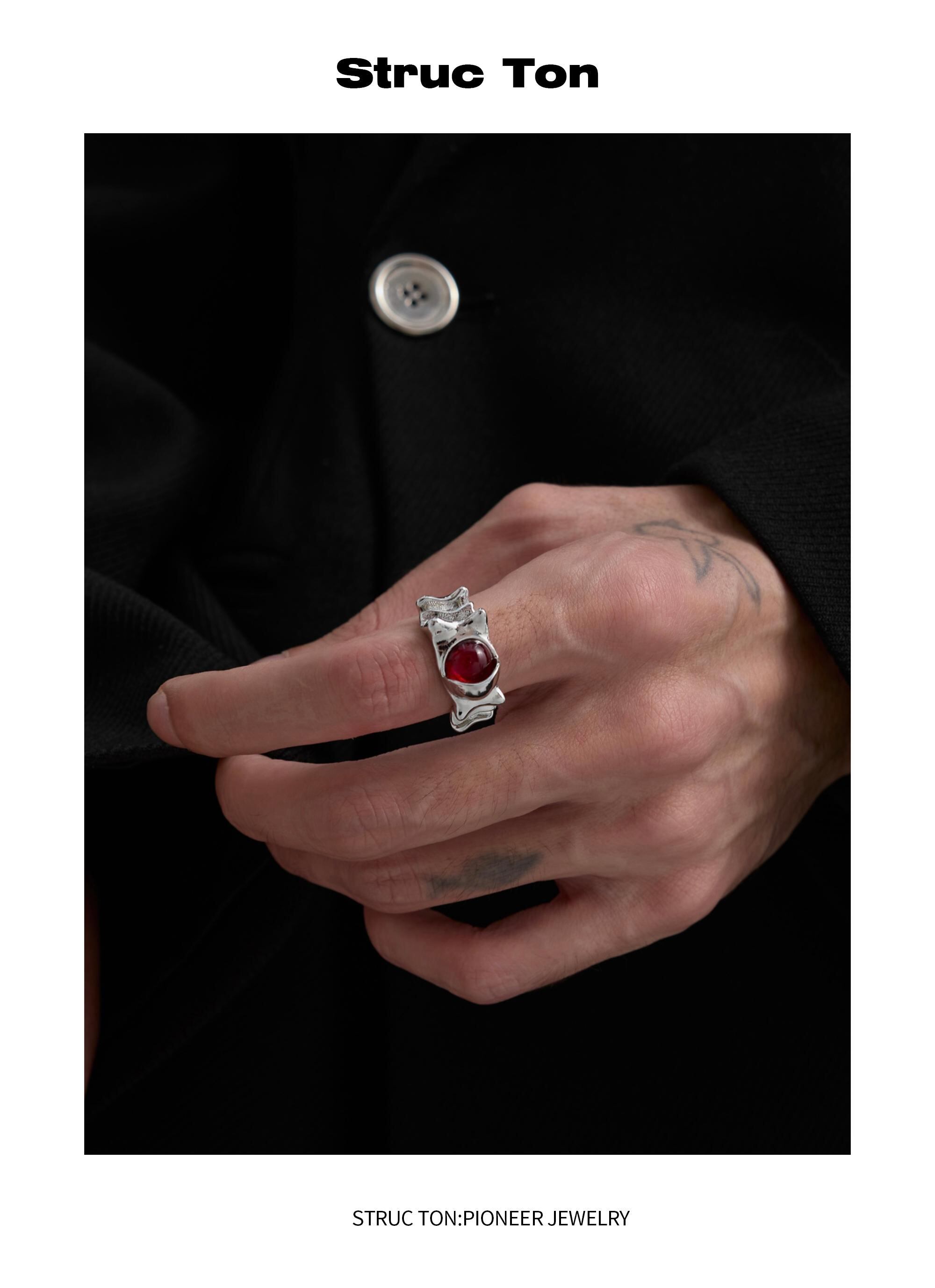 [StrucTon] Irregular Texture Ruby Ring | creeptrey
