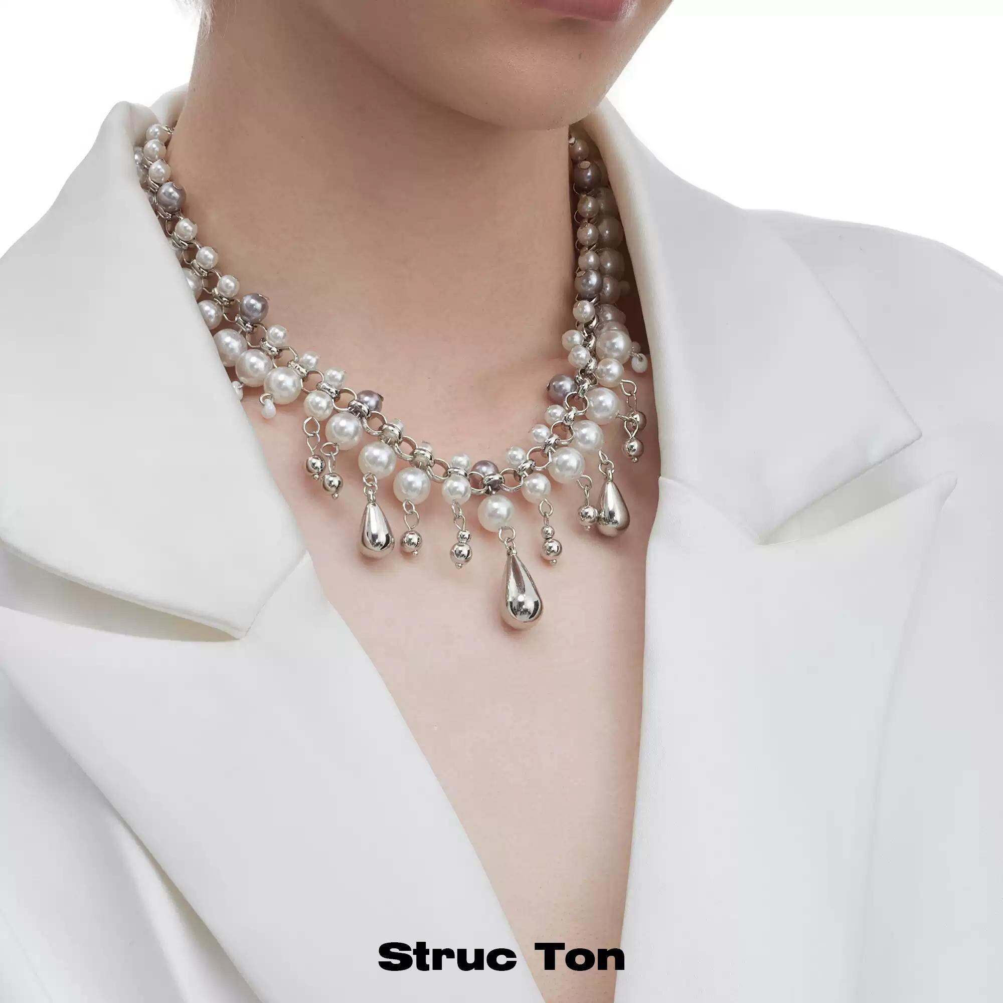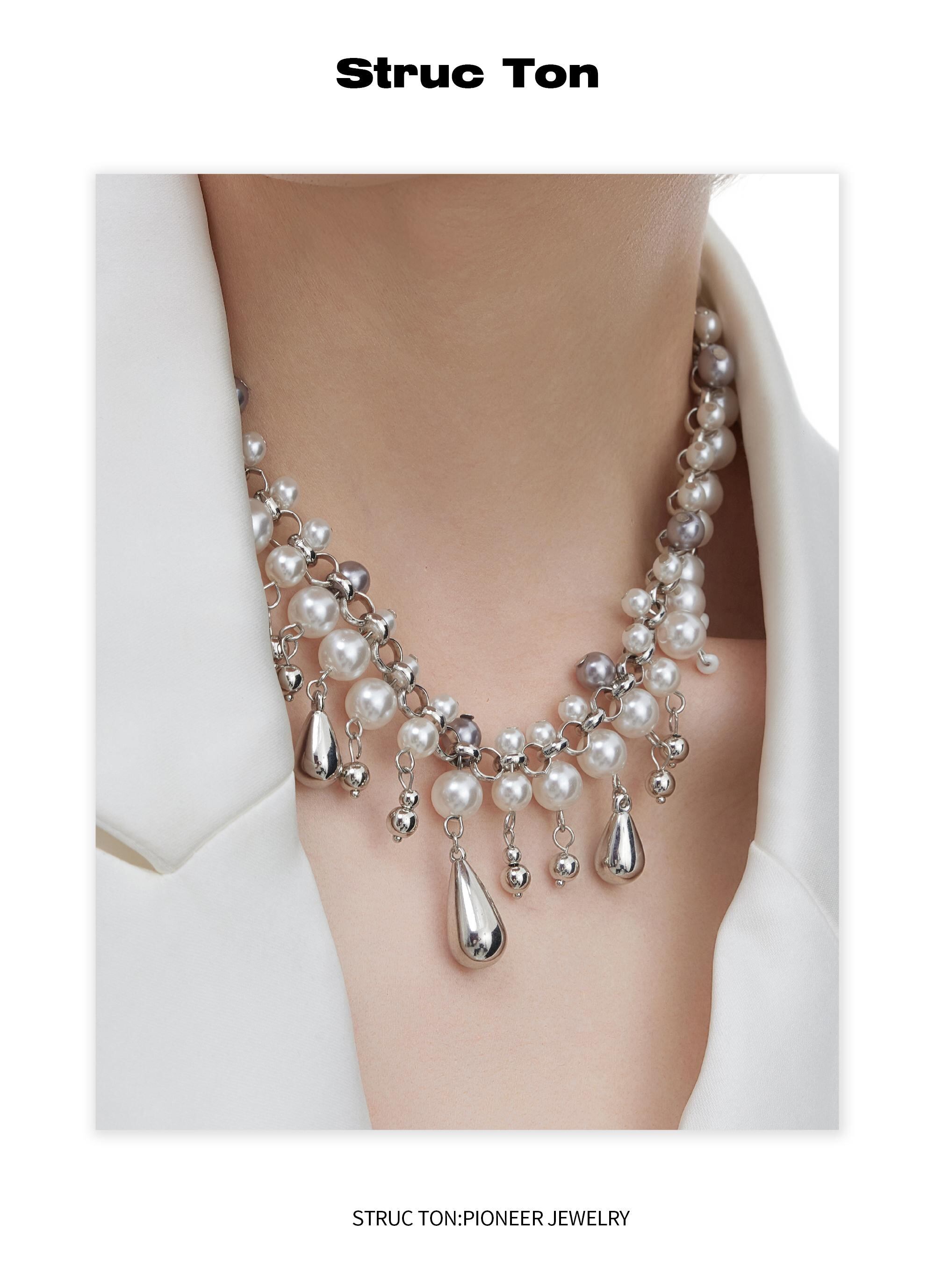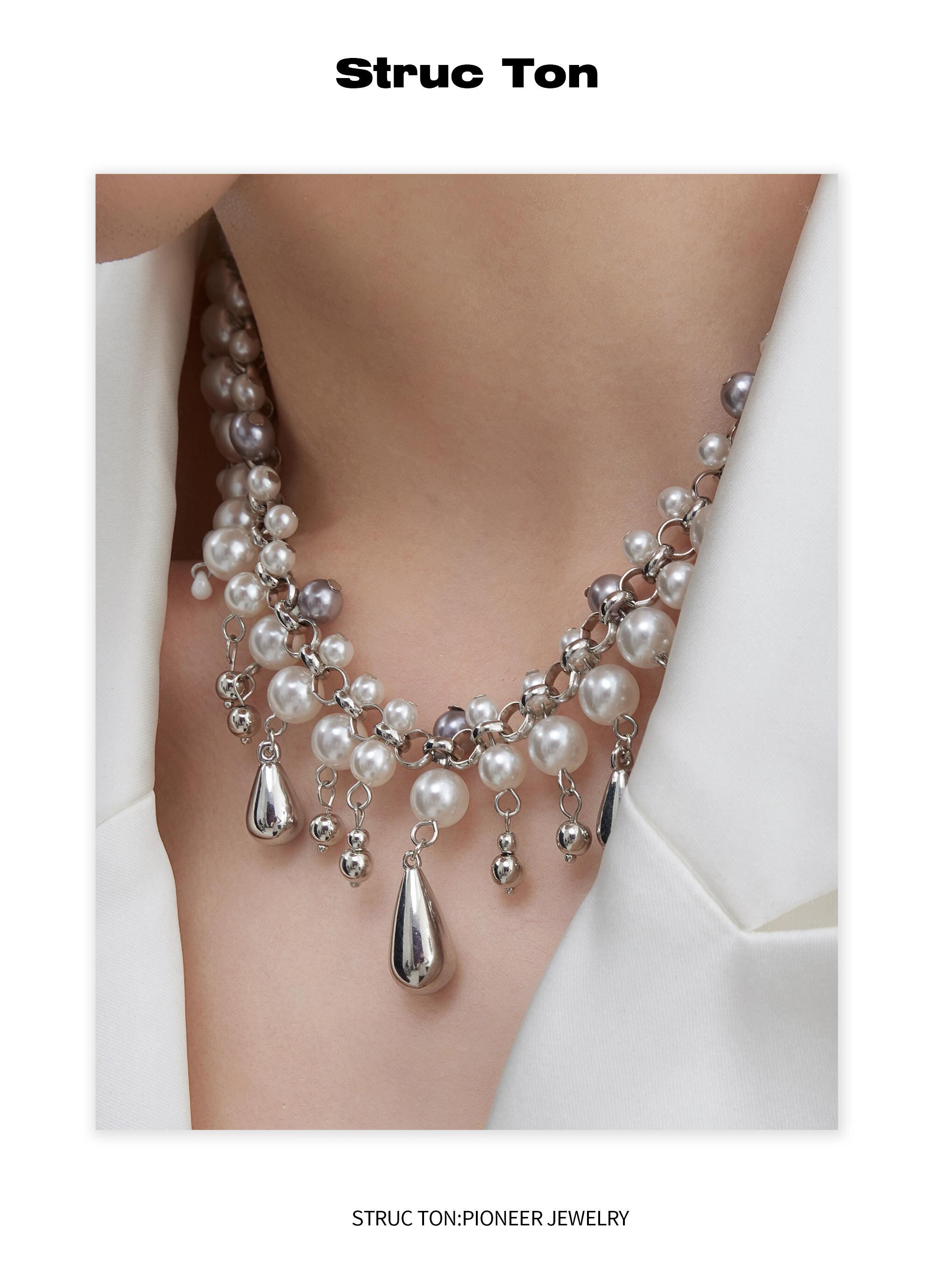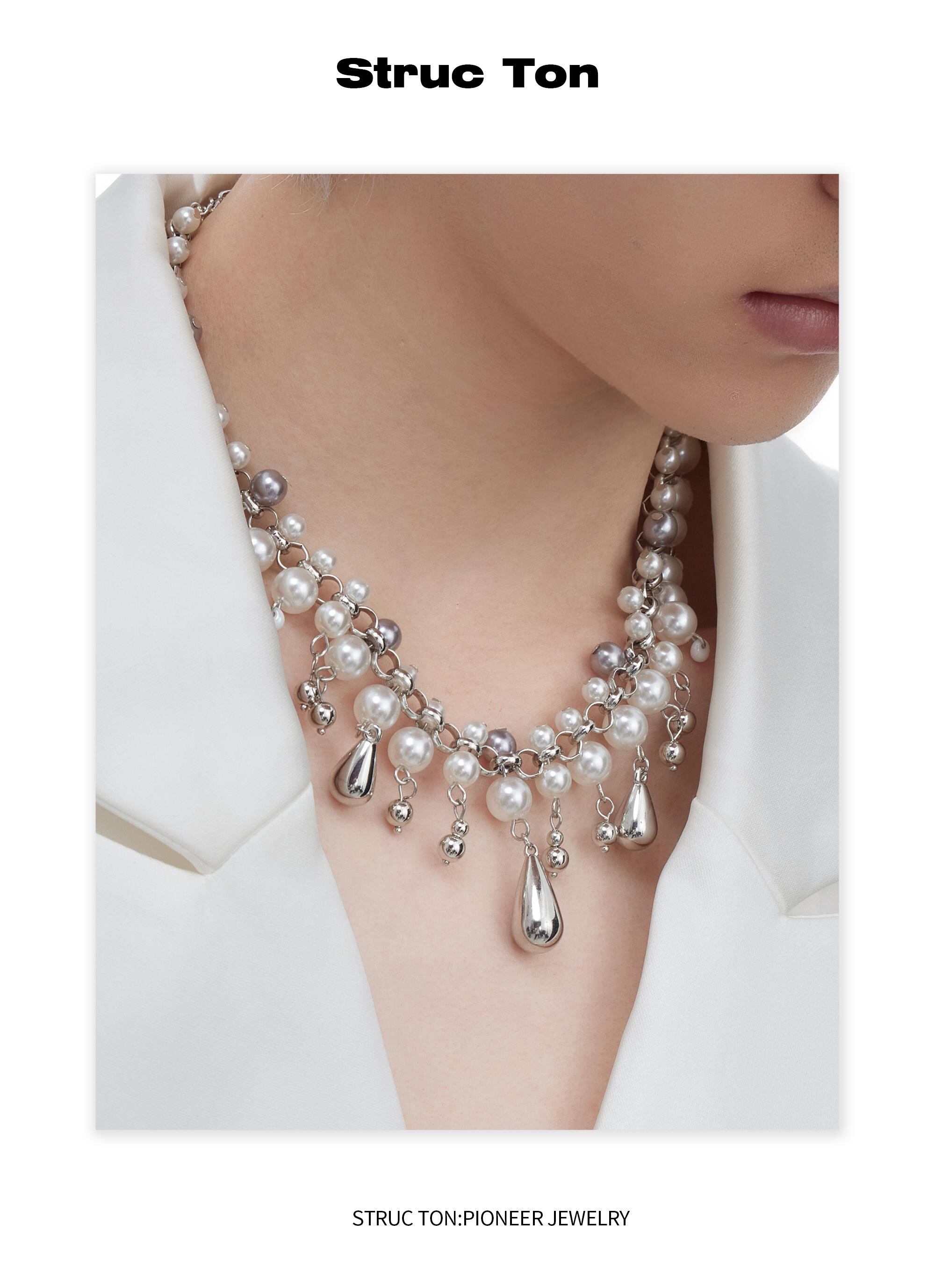 [StrucTon] Teardrop Pearl Tassel Necklace | creeptrey