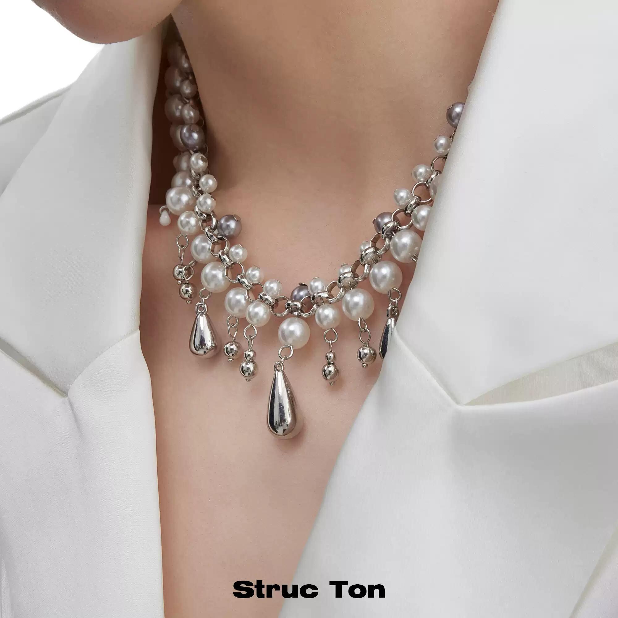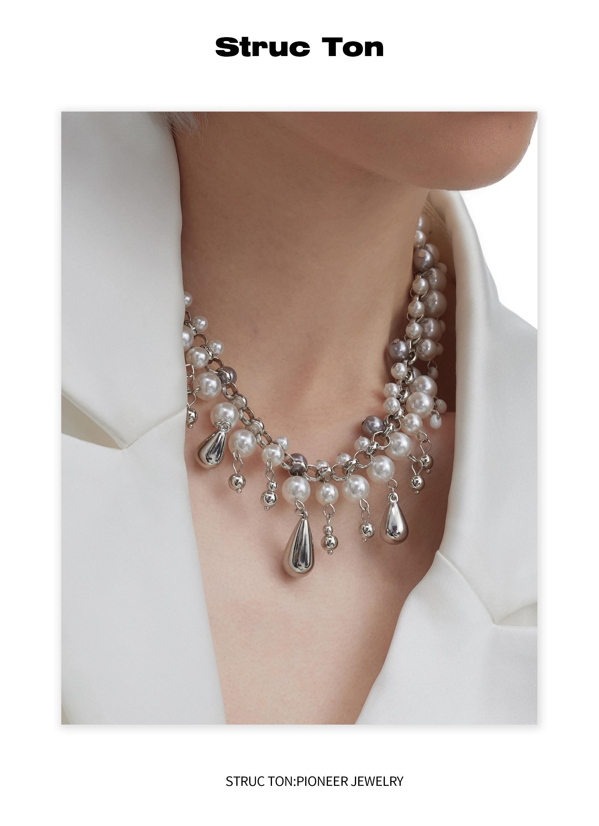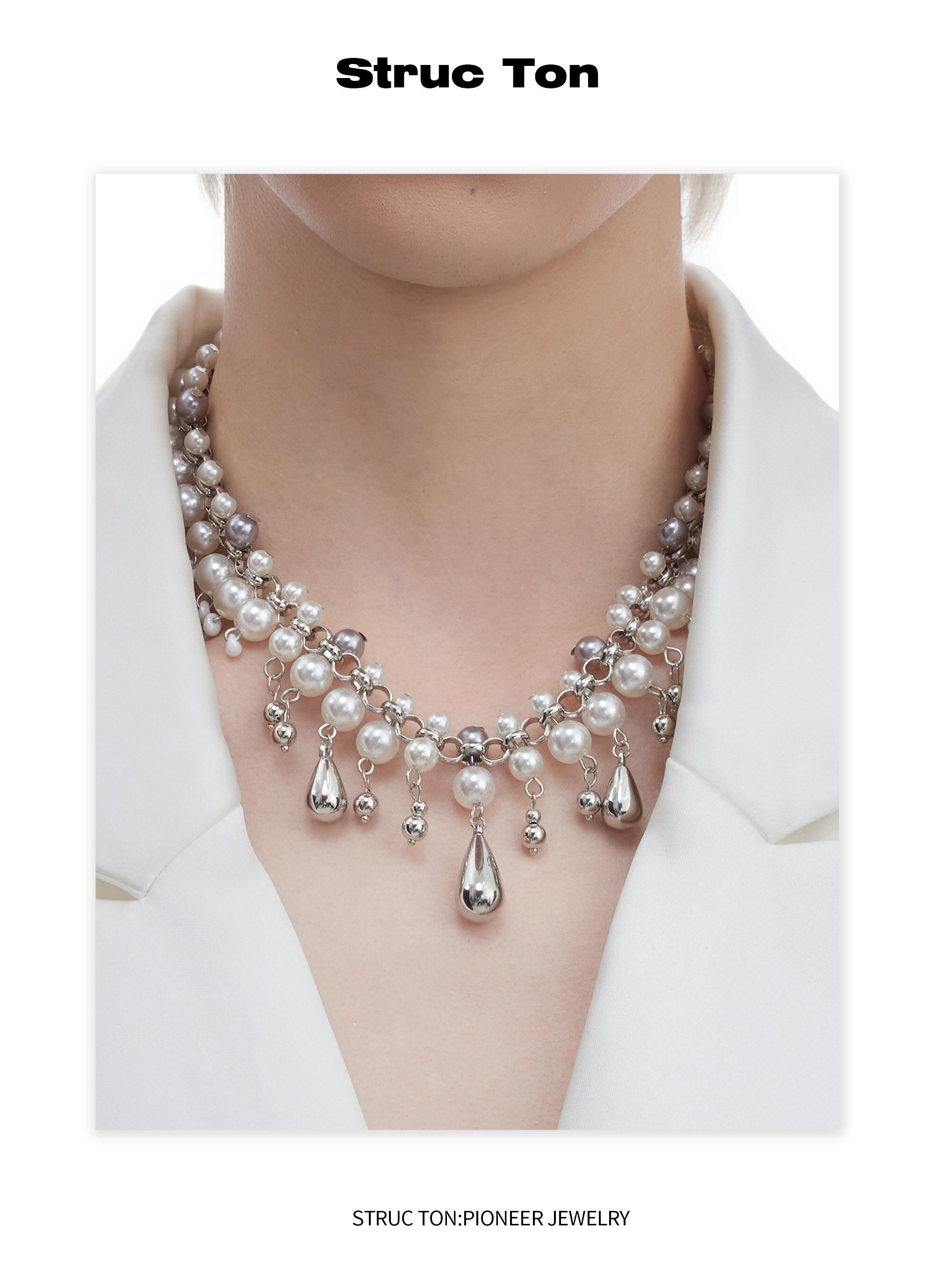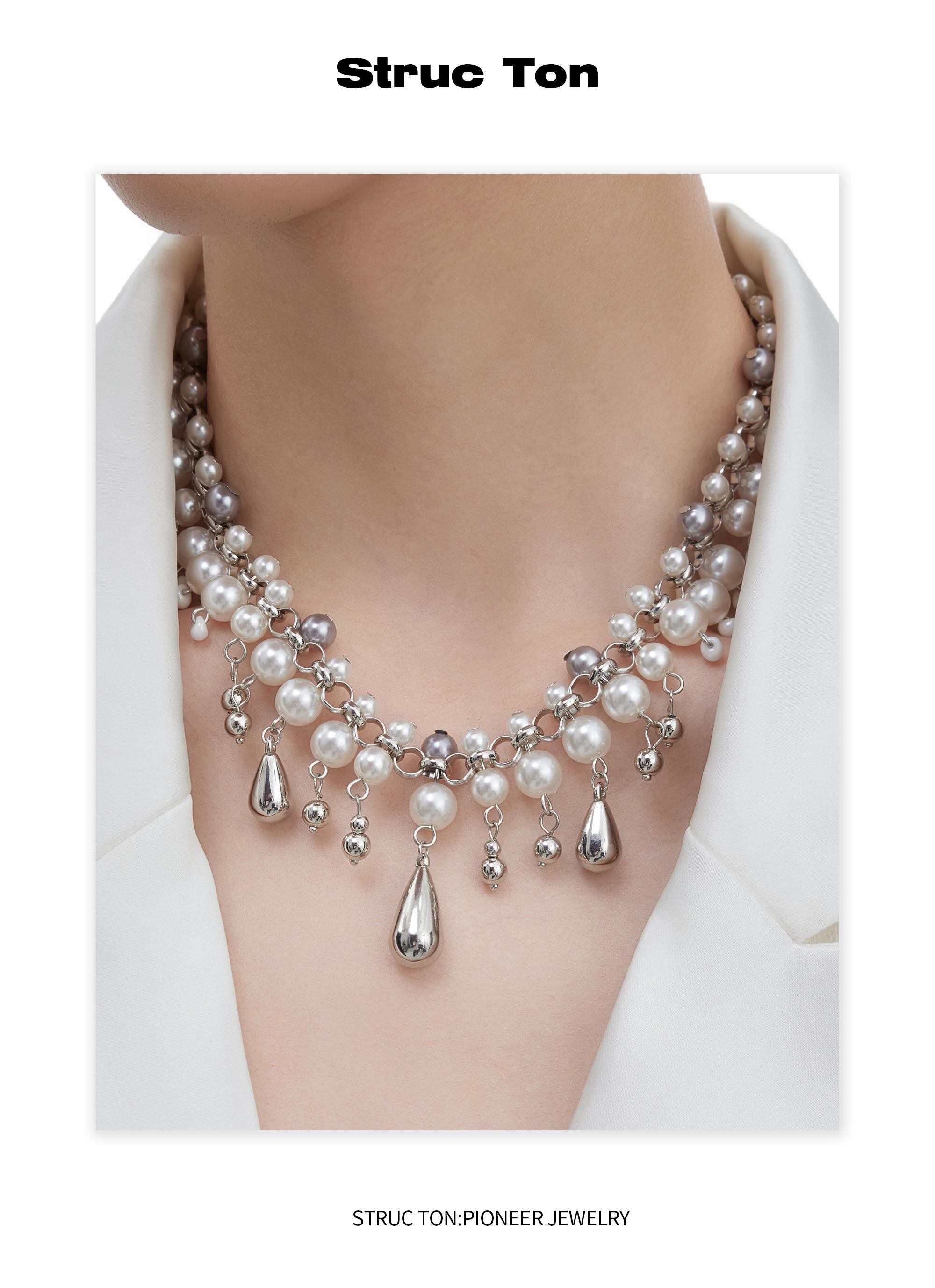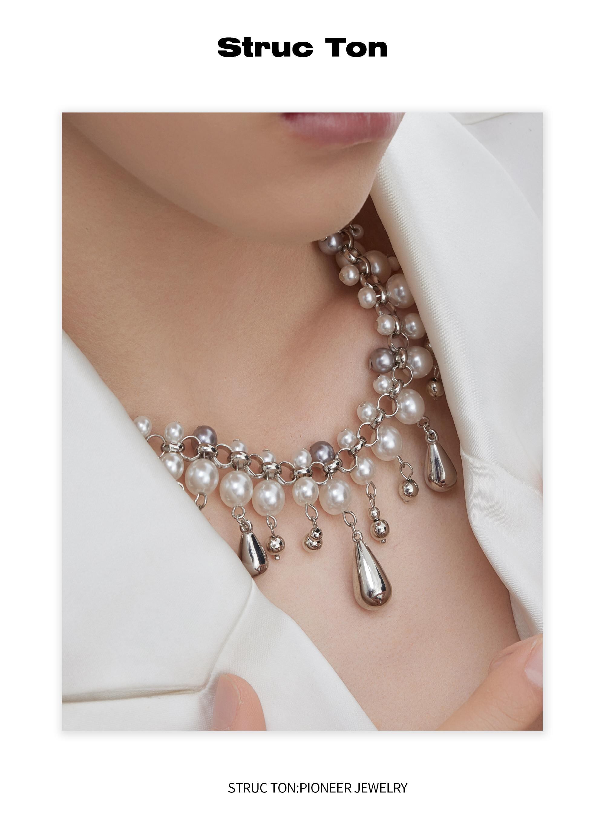[StrucTon] Teardrop Pearl Tassel Necklace | creeptrey