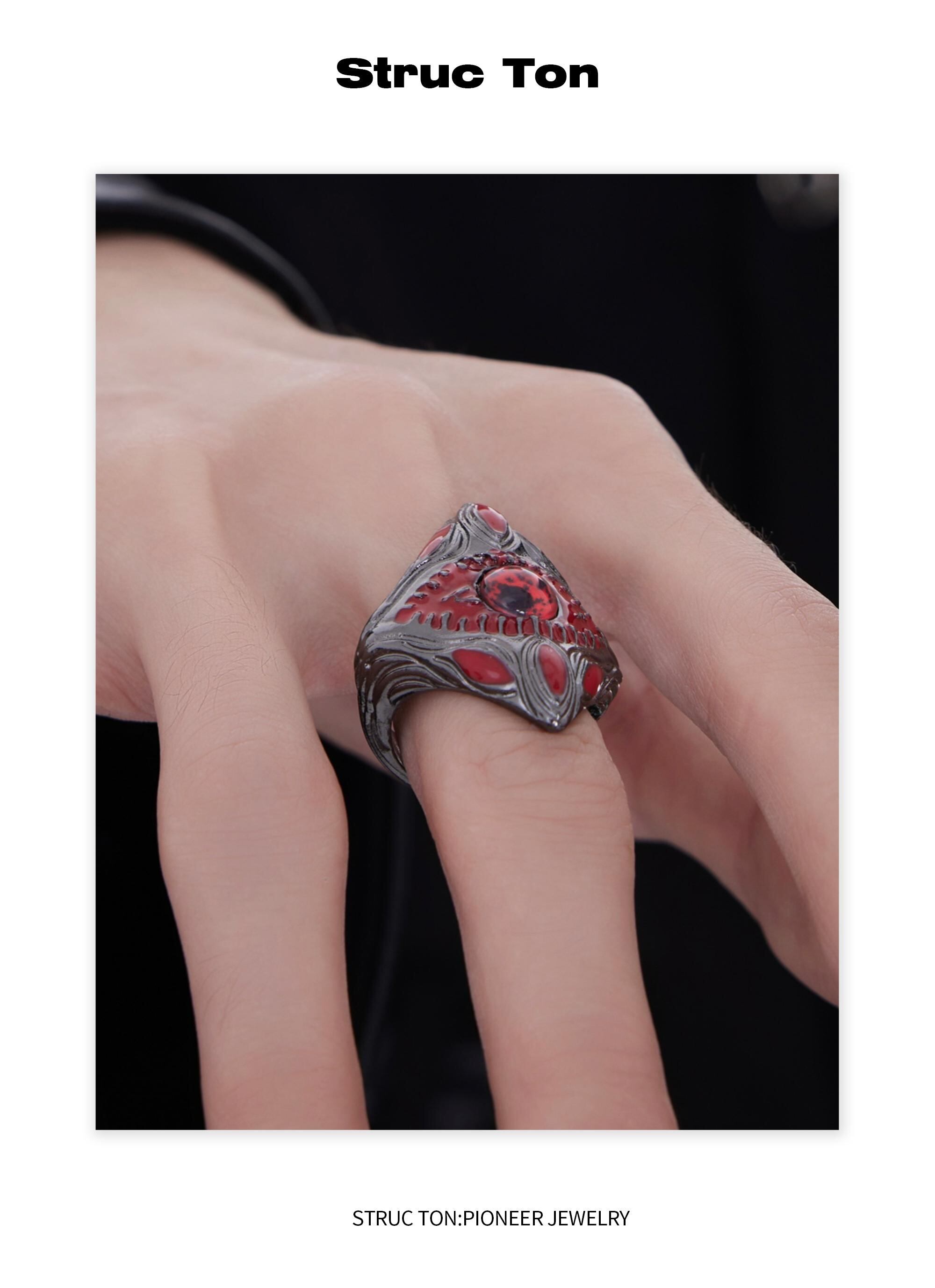 [StrucTon] Spiked Red Eye Thorn Design Fashion Finger Ring | creeptrey