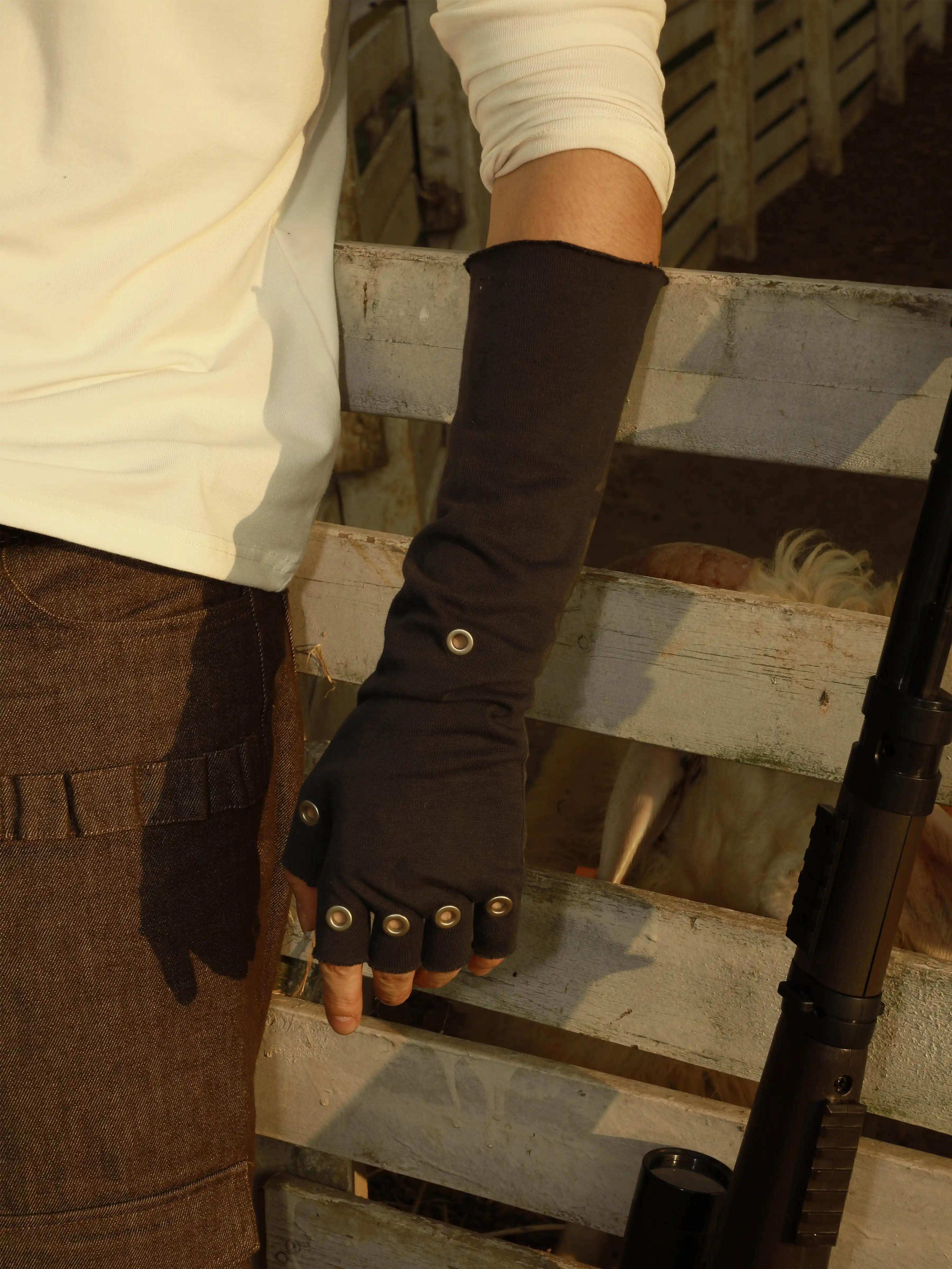 [Johari Window] Black Futuristic Punched Fingerless Gloves
