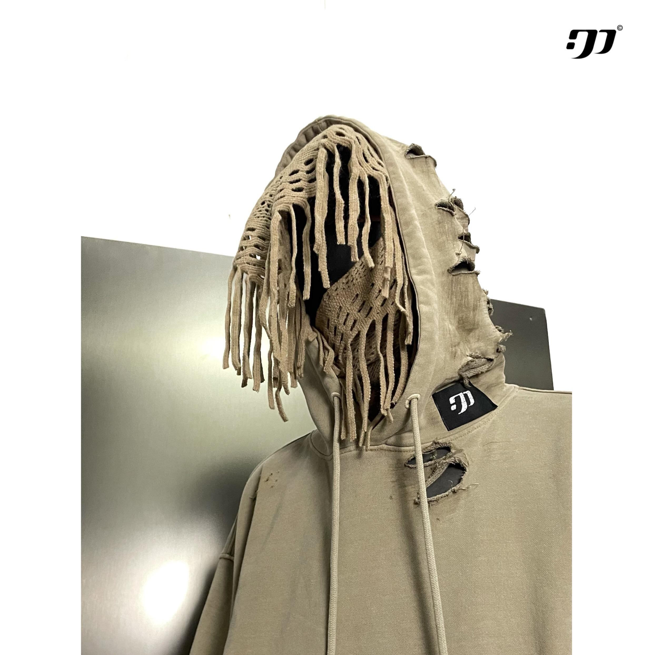 [Dualpersonality] Cashmere Fringe Shawl Scarf with Hood | creeptrey